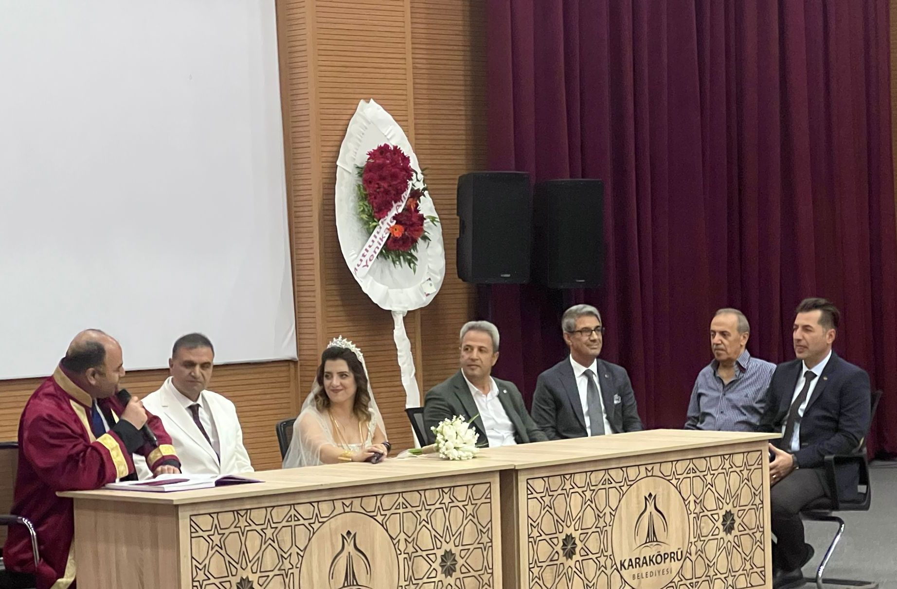 Şanlıurfa Karaköprü ilçesi Kültür ve Gösteri merkezinde gerçekleştirilen nikah merasiminde, çiçeği burnunda çiftin nikâh törenine şahitlik eden şahitler; GAP Bölge Kalkınma İdaresi Başkan Yardımcısı Mehmet AÇIKGÖZ, Akçakale Tarım İlçe Müdürü Tahsin Gökalp ŞENER, Milli Eğitim Şube Müdürü Faruk YILDIZTEKİN ve iş insanı İsmail DEMİRKOL çiftin mutluluklarına imza attılar.